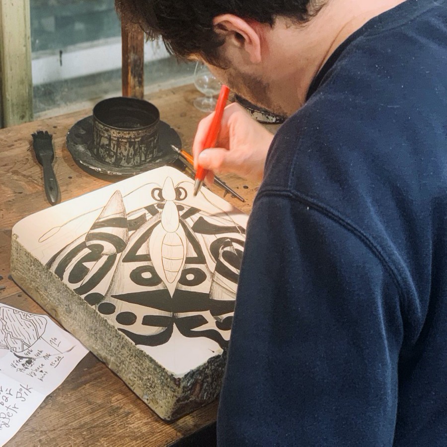 1️⃣ Na kámen se nakreslí motiv mastnou kresbou.