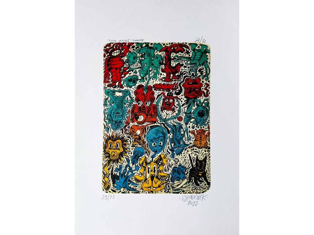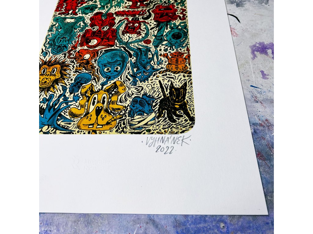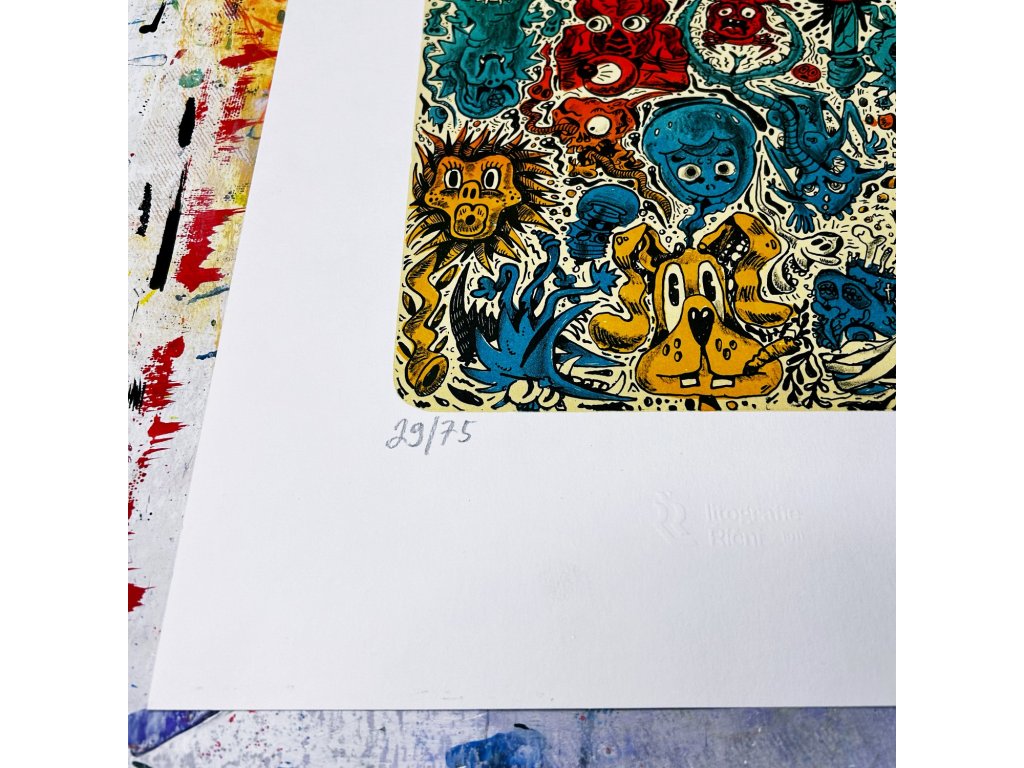 Popis: Velmi limitovaný sítotisk Zrození, který vznikal v sítotiskové dílně Analog Bros.